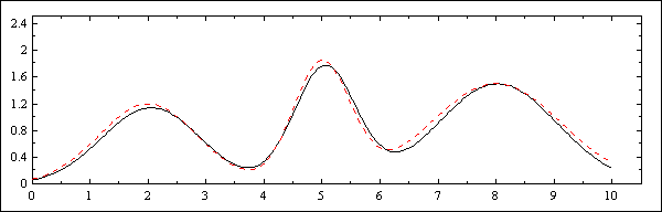 It is interesting to see how close we get to the original signal which was used to create the simulated data, so in Fig. 2 we show this theoretical curve (red) together with the fitted curve (black).