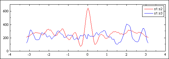 In order to compare the measured signals we calculate the cross-correlation of s1 with s2 and with s3. These correlations are shown in Fig. 4. Looking at the results we see that s1 and s3 have a good correlation while the correlation between s1 and s2 is much smaller.